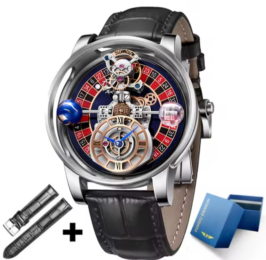 The roulette ball inside the dial spins with a hidden button on the side—designed to be felt, not seen, preserving the watch’s elegance.